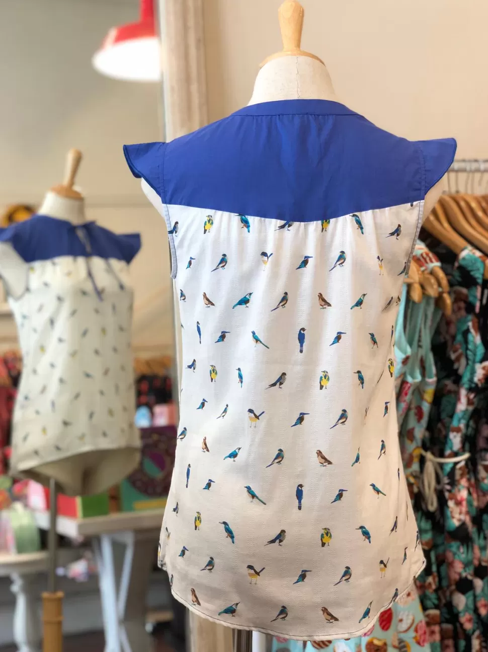 Bonjour! This top is perfectly sweet, featuring ruffled flare-out sleeves and sweet bow detail, creating a keyhole opening at the front of the top.