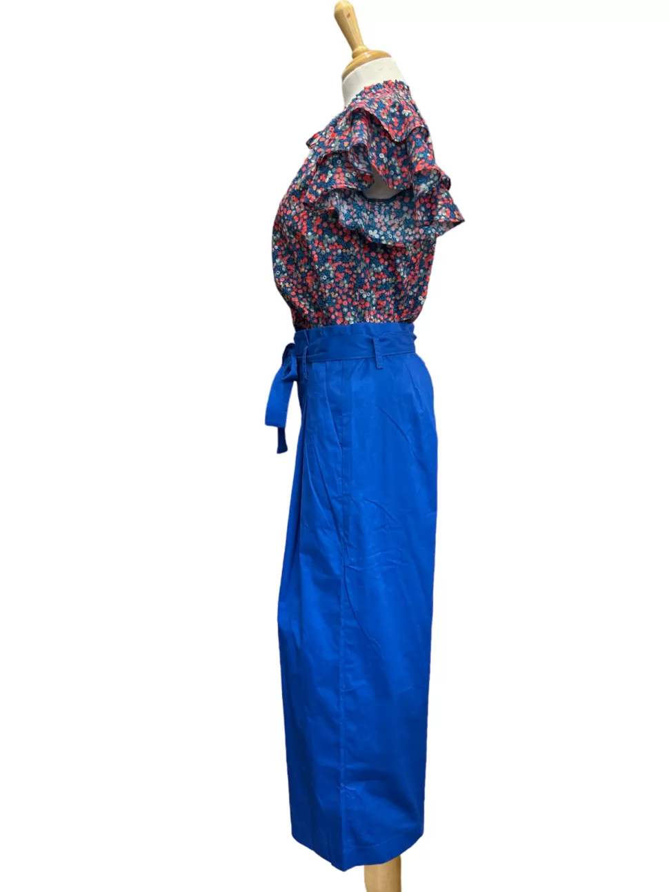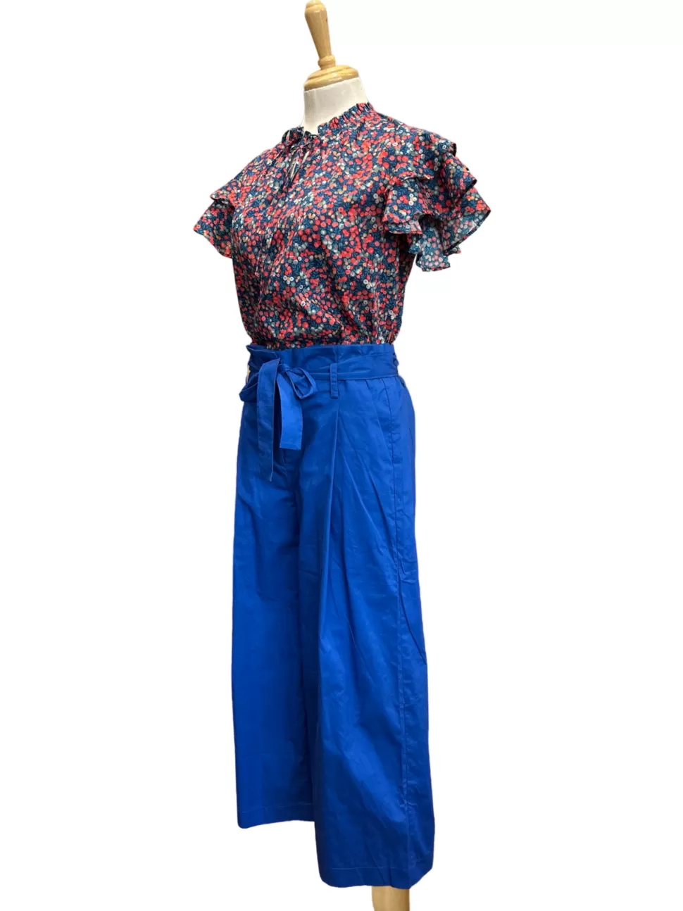 These wide-leg trousers showcase a flattering paper-bag waist with front pleats for extra fullness. The back darts ensure a pleasing fit, and the ensemble is completed with a removable waist tie. Perfectly paired with Maria Top – floral .