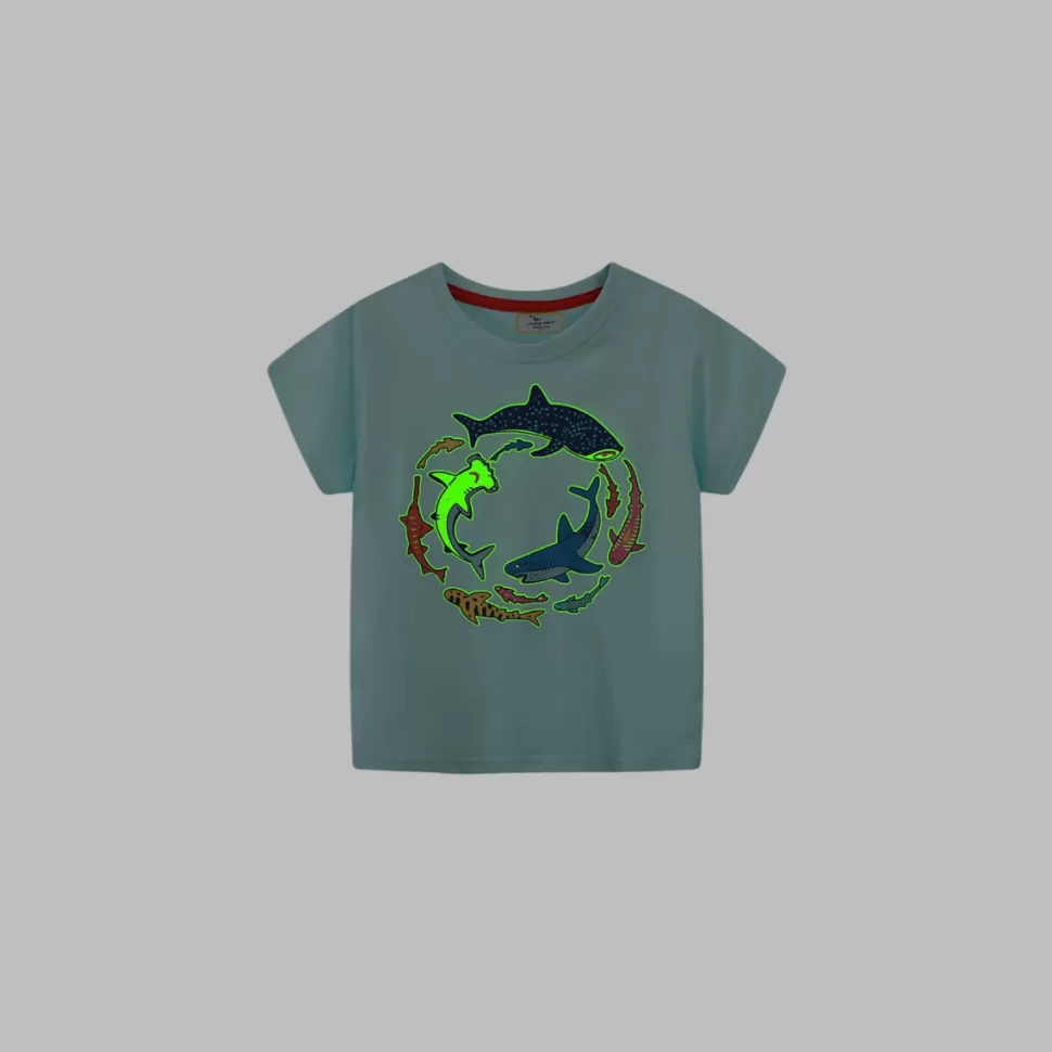 Best Sale Origami Doll Shark World glow in the dark kids tee