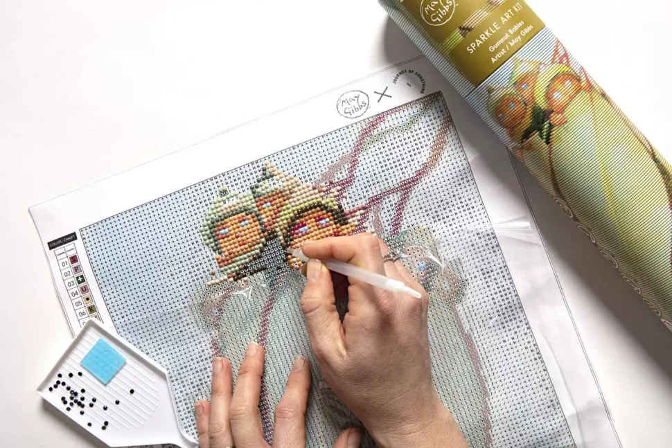 When cuteness and the Aussie bush combine. We are chuffed to dip into the May Gibbs archives and bring you products celebrating this nostalgic and treasured part of Australian folklore. If you haven’t tried diamond art yet, you should! It’s easy, relaxing and addictive. And best of all, the results are stunning! Your kit has everything you need to complete your piece. ContentsSparkle Dots.1x Sparkle Art Canvas.1x Stylus.1x Wax.1x Tray.Additional InfoCompleted Artwork Size 25 x 35cm (size of canvas including border 30 x 40cm). Suitable for Ages 8 – 99Australian Owned and DesignedMindful Activity About May GibbsMay Gibbs is one of Australia’s best loved, classic children’s book writers and artists. May’s deep love of the Australian bush was portrayed in her work, engendering in children her own love of nature.