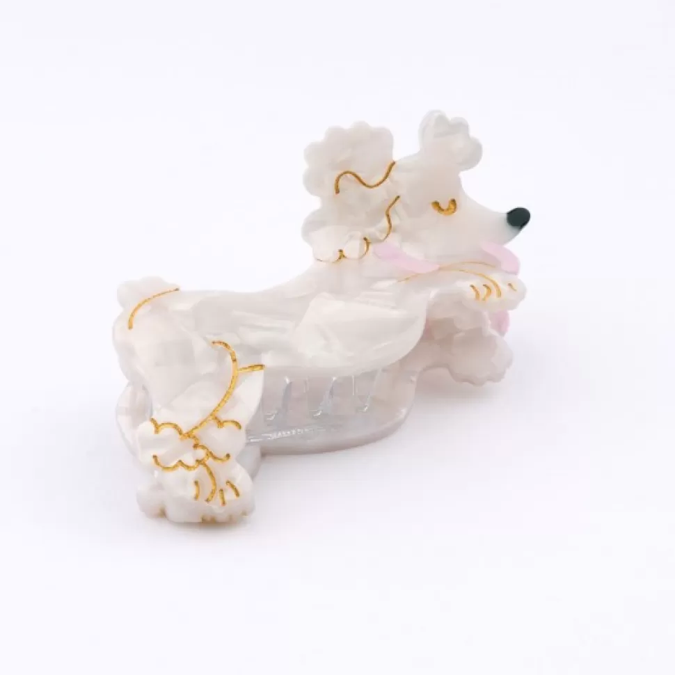 An adorable pearly white hair claw with acetate teeth, shaped as an enthusiastic Poodle demanding a cuddle (or a tasty treat?). Even if they are known to be popular among our beloved grandmas, we love their nice looking faces and their curly hair. Just what you need to add an original touch to the most basic hairdos!