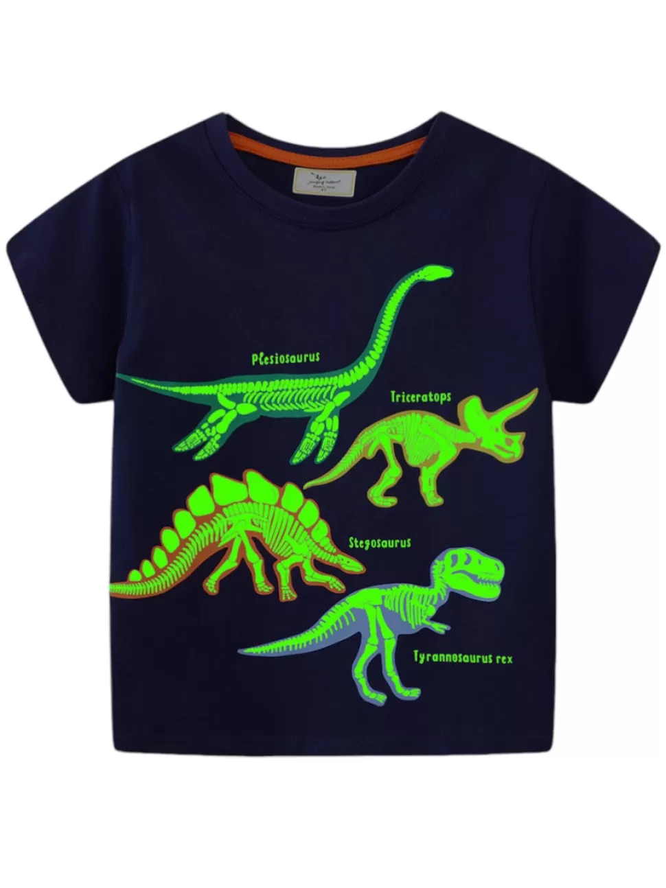 Cheap Origami Doll Dinosaur’s skeletons glow in the dark kids tee