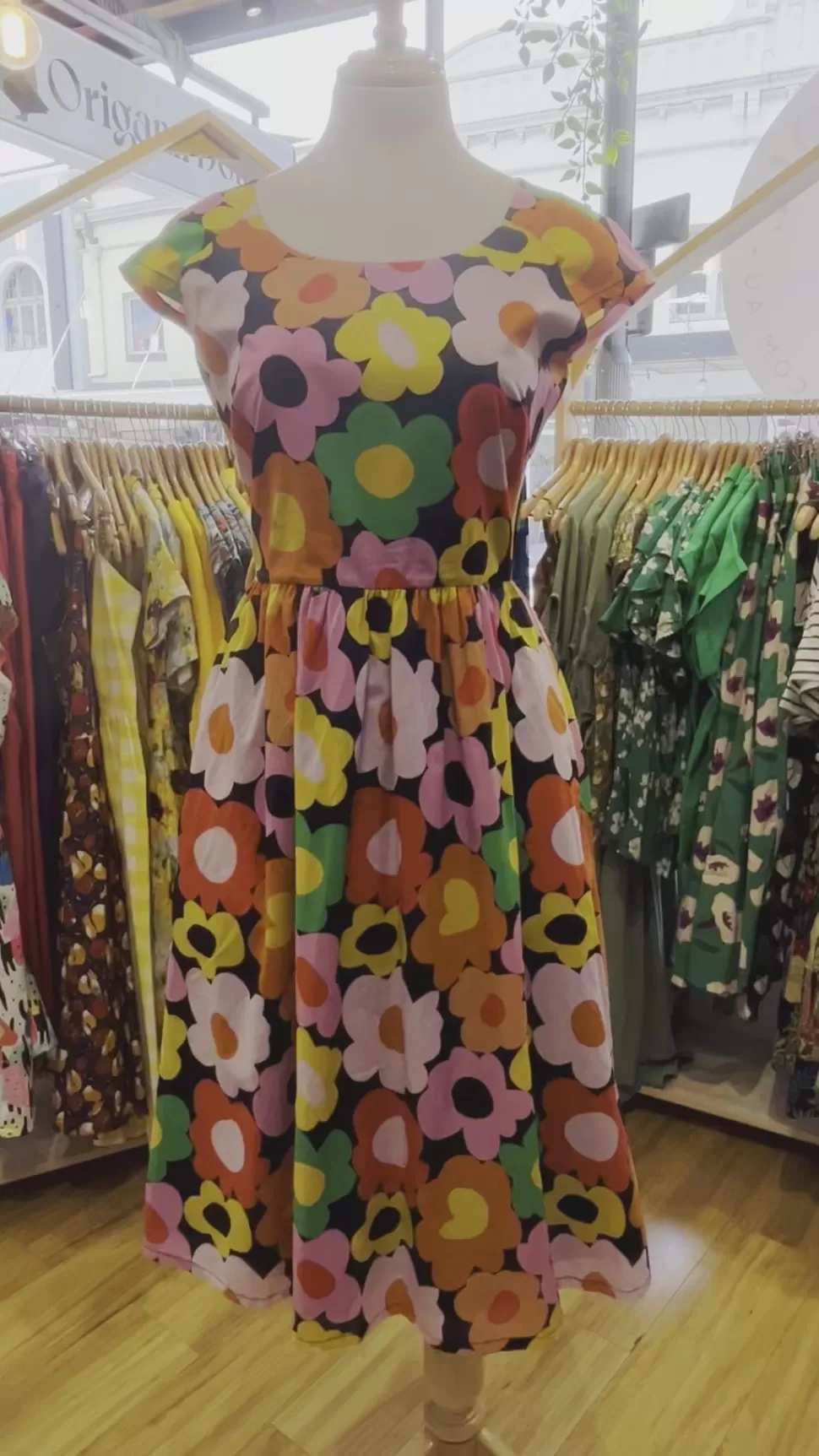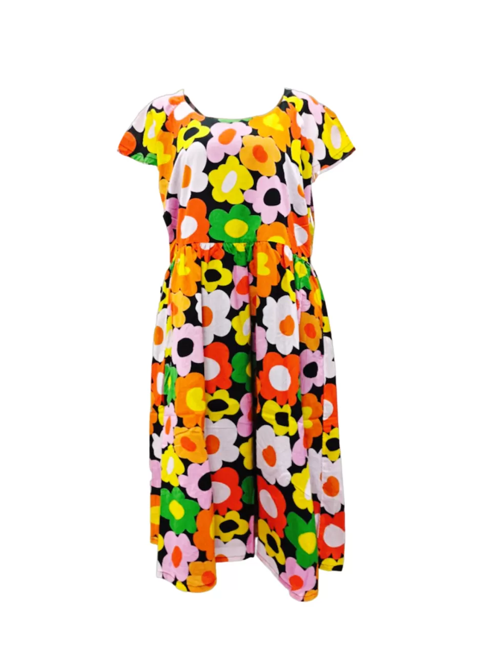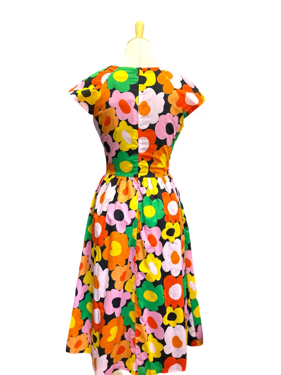 Introducing the “Life is Picnic” dress, now extended in length and sizing for the classic version. For a flattering fit, switch to size 6 if you were previously size 8. This colourful floral dress, made of 100% lightweight cotton, combines elegance with practicality. Featuring a back zipper and pockets, it’s your ideal companion for carefree outings, seamlessly blending comfort and sophistication.
