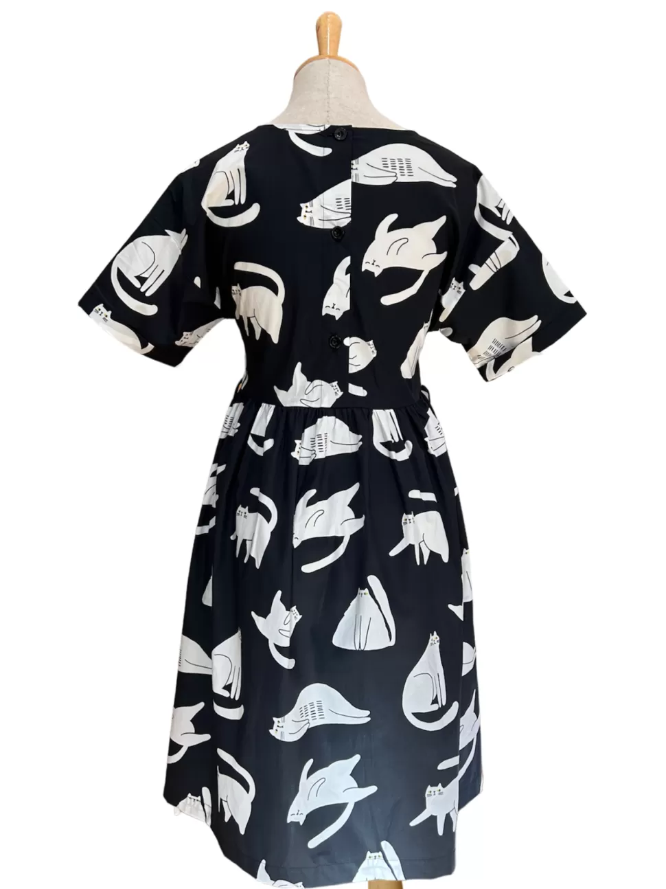 The Molly Dress is a charming smock-style dress made from 100% soft, breathable cotton, perfect for effortless style and comfort. Falling gracefully to knee length, it features a classic round neckline and a button closure at the back for easy wear. A thin belt ties at the back, allowing you to cinch the waist for a more defined silhouette. Plus, the dress comes with convenient side pockets, adding both practicality and a laid-back vibe. This versatile dress offers a relaxed yet flattering fit, ideal for casual outings or layering for more formal occasions.