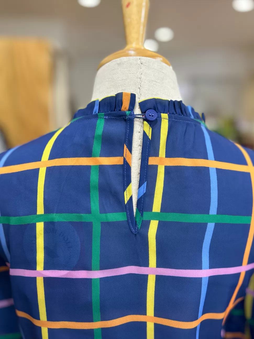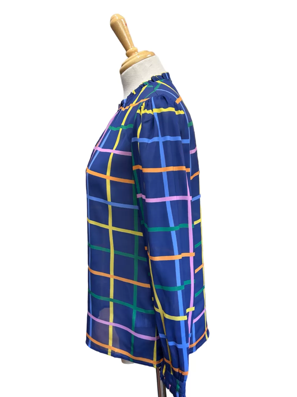 Introducing the delightful Cynthia top, a whimsical treasure to brighten your day! Crafted from 100% recycled polyester, it embraces comfort and style with open arms. Adorned with a vibrant checkered print, this playful pattern adds a pop of color and energy to your ensemble. The long puff sleeves add a touch of playfulness, while the ruffle neck exudes feminine grace. And oh, the cute keyhole at the back, a delightful surprise for all who catch a glimpse. Prepare to feel fabulous and look adorable in the Cynthia top, a delightful blend of charm and eco-friendly comfort!