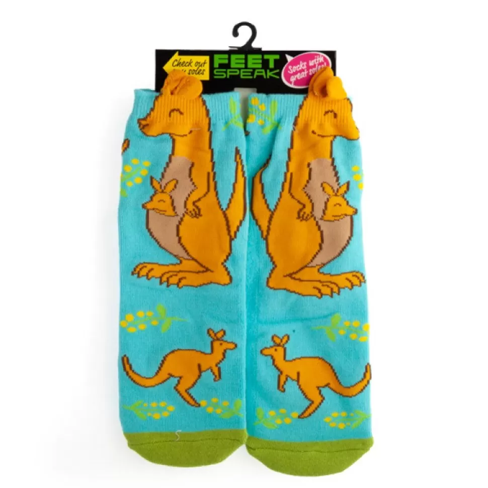 - Features a mumma kangaroo with a baby in her pouch, surrounded by wattle flowers