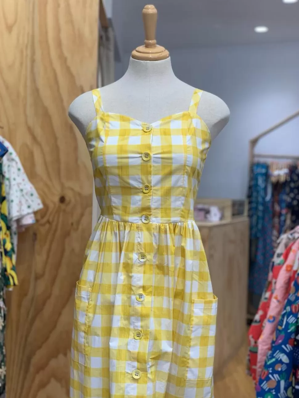 This button-up dress is fully gathered and features adjustable straps, patch pockets, and shirred elastic back detail.Penelope is perfect for a picnic by the sea or a stroll to the shop. 100% Cotton