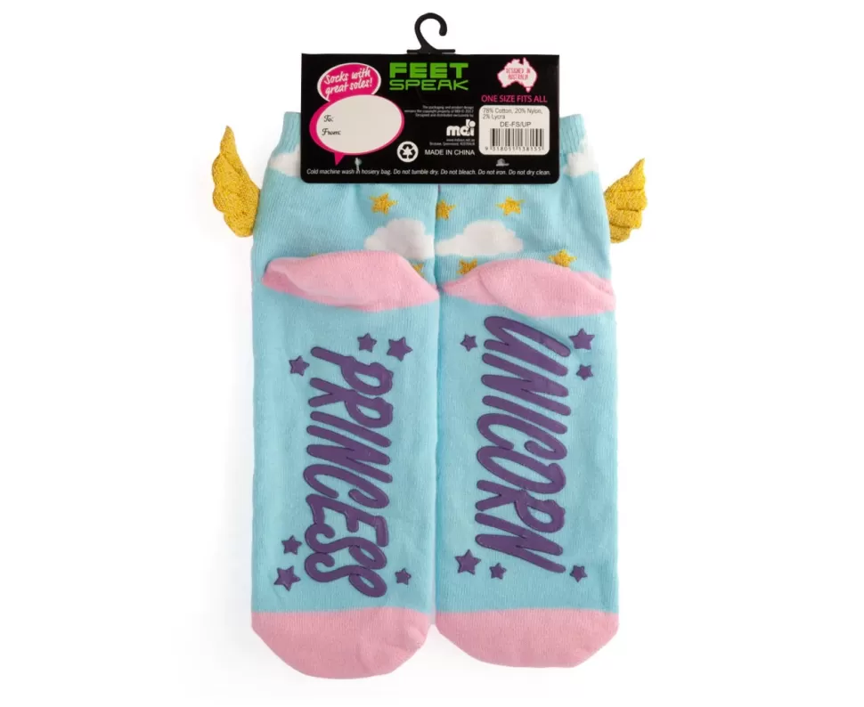 Who wouldn’t love comfortable socks for lounging in? Socks with great soles!Features cute unicorn princess on topOne si…
