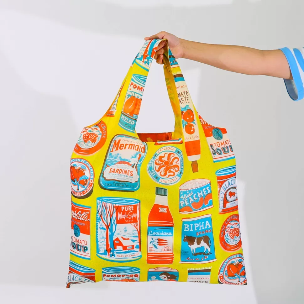 Great for schlepping your sh!t while supporting artists, our rad new eco-friendly Art Sacks hold up to 50lbs and fold into an interior pocket for easy grab-and-go. Made of 100% Recycled rPet, using a waterless printing process. Machine washable. This design features The Printed Peanut studio of Louise Lockhart of Yorkshire, UK. Her playful and nostalgic colorful cut paper illustrations are inspired by Folk Art, print ephemera and vintage textiles.-Bag folds into pouch the size of 4.5 x 5.75 inches-Bag is 18 x 19 inches with 10 inch handle when opened-Fabric is rPET made from plastic bottles, STANDARD 100 by OEKO-TEX® certified