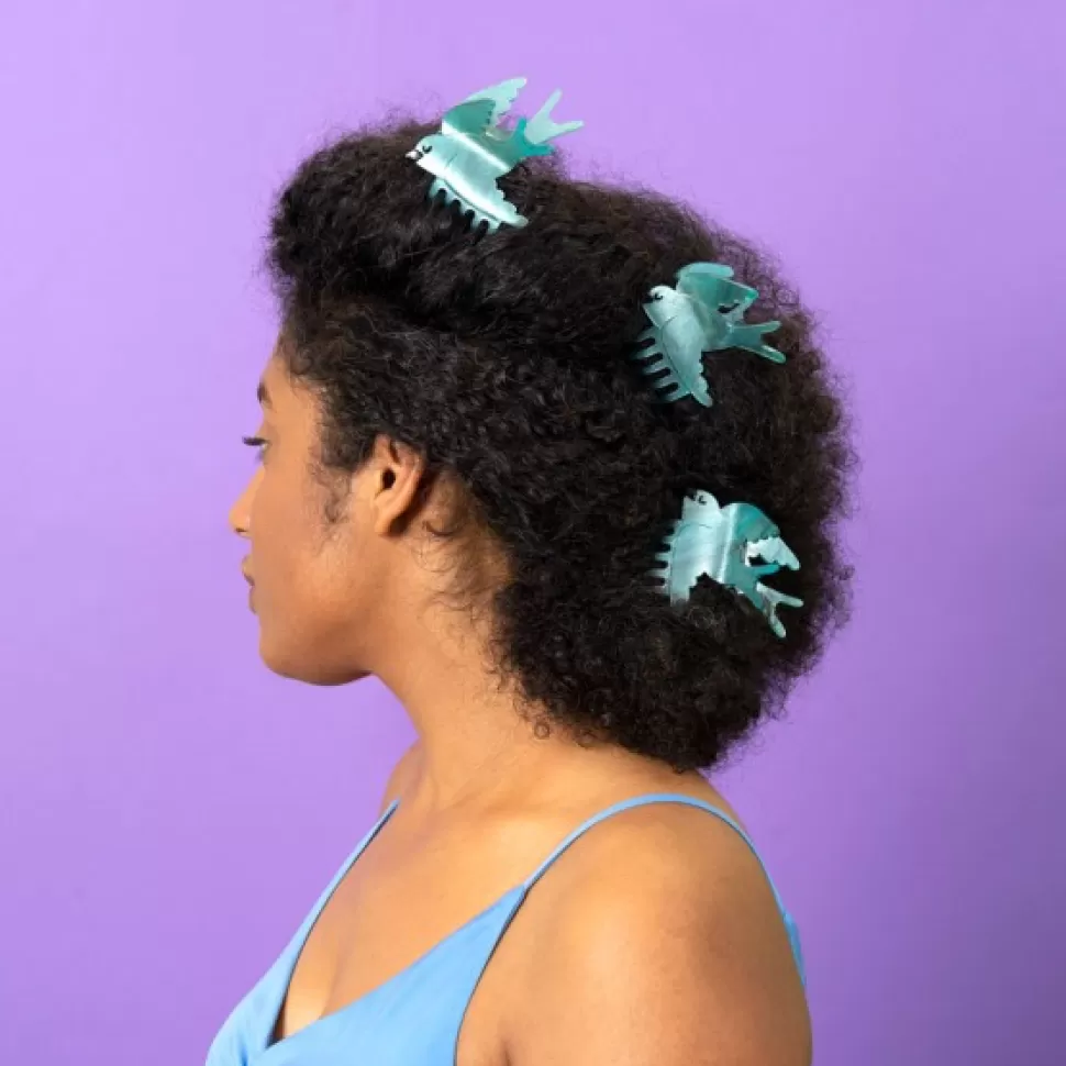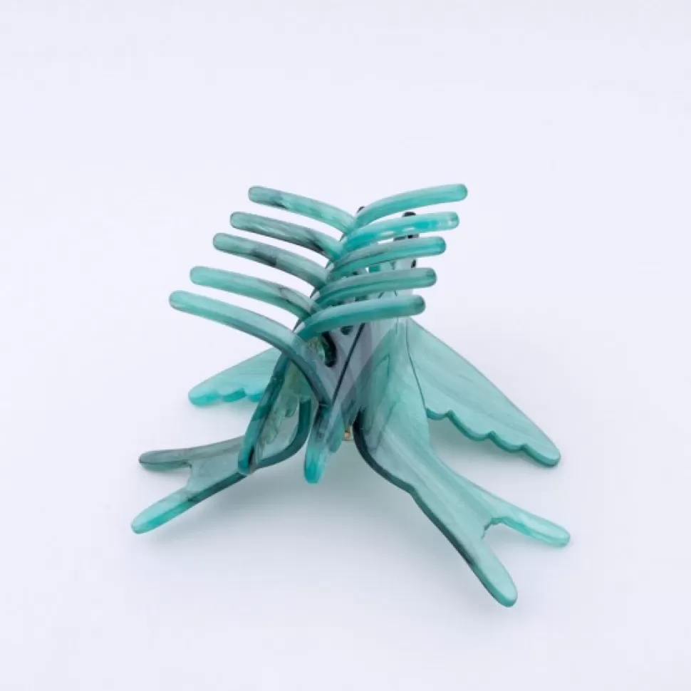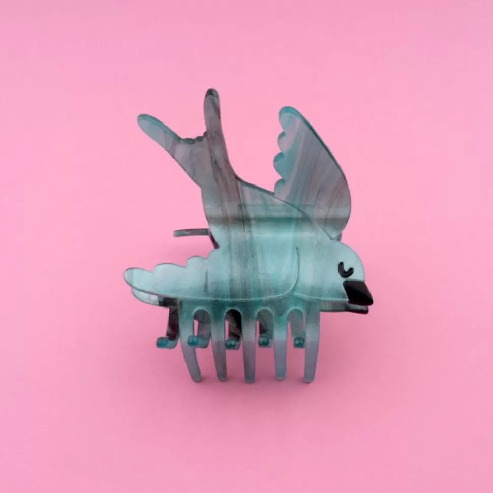 A beautiful flying swallow, in green-blue tones with black details and a touch of glitters. We are in love with this hair claw shaped as a bird, perfect for thin and thick hair. A true little jewelry to add so color and fun to every hairstyle!