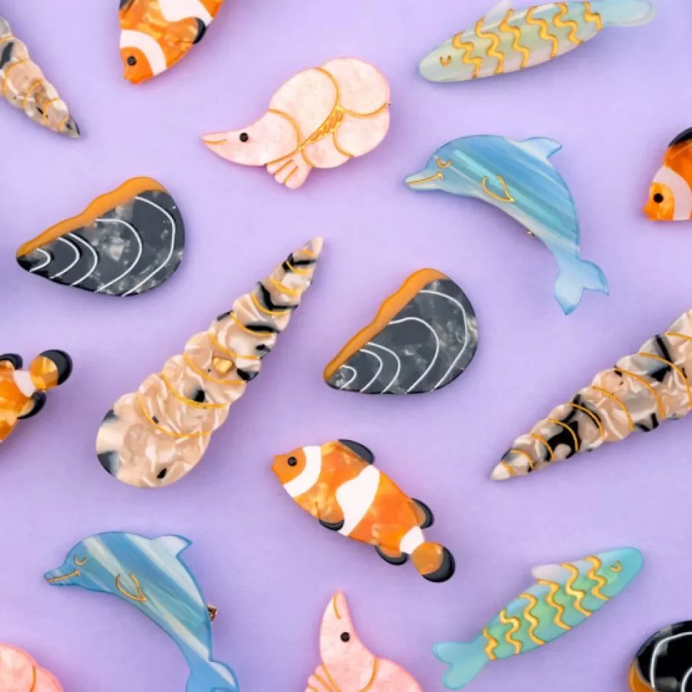 One of our favorites of the collection: this amazing pink shrimp hair clip! Between the smirk, the rhinestone eye and the delicate glitters, no way we could resist it. Hair, bag, clothes… Feel free to clip it anywhere you want!