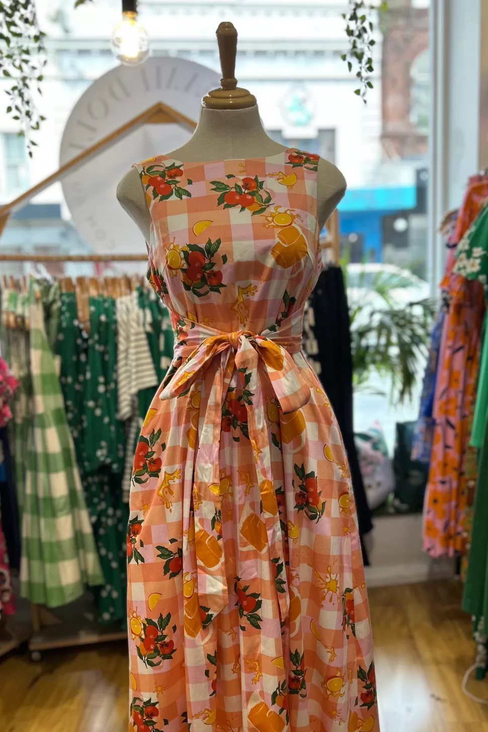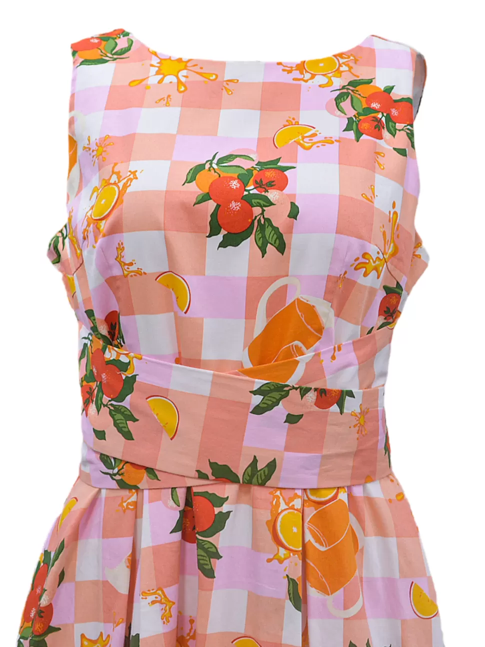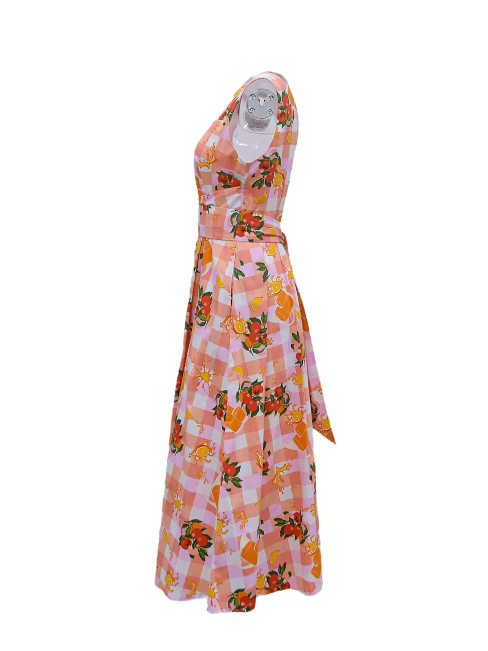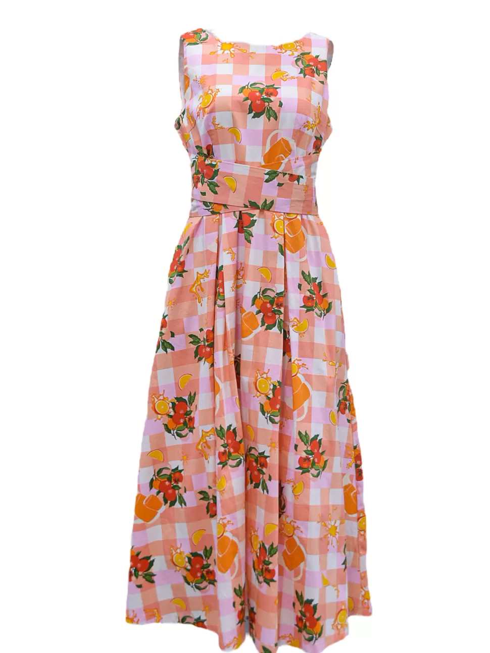 Picture a stunning plaid background cotton dress that features a wide sash belt tied elegantly at the back. This midi-length dress boasts a beautiful combination of vibrant orange and soft pink colors, creating a harmonious and eye-catching blend. The dress is not only aesthetically pleasing but also comfortable, thanks to its full cotton lining that ensures a cozy fit. Whether you’re enjoying a sunny day outdoors or attending a special event, this dress is the perfect choice to exude a sense of style and sophistication while embracing the refreshing and invigorating vibe of orange and orange juice.