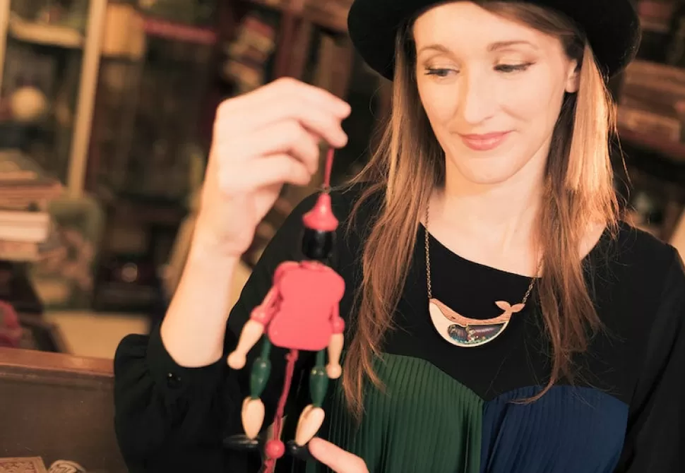 These cute little necklaces are all hand made and design in Spain … These precious fashion accessories are all inspired by the classic tale, vintage decor, and childhood memories… frame with laser cut natural wood, 3D cut paper with three layers at a different depth, and acetate …illustrated by LaliBlue…