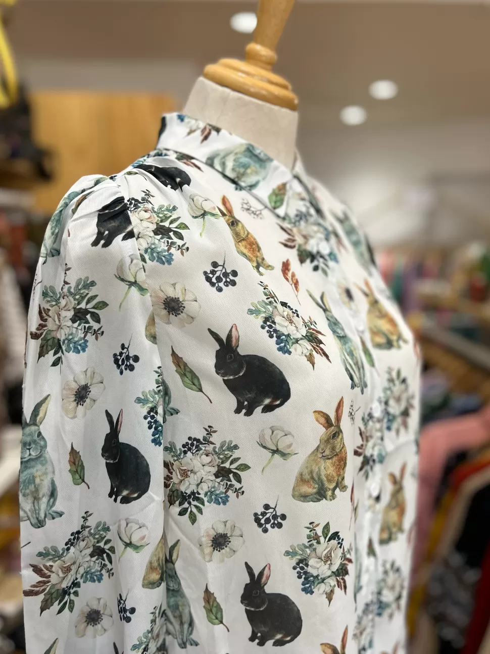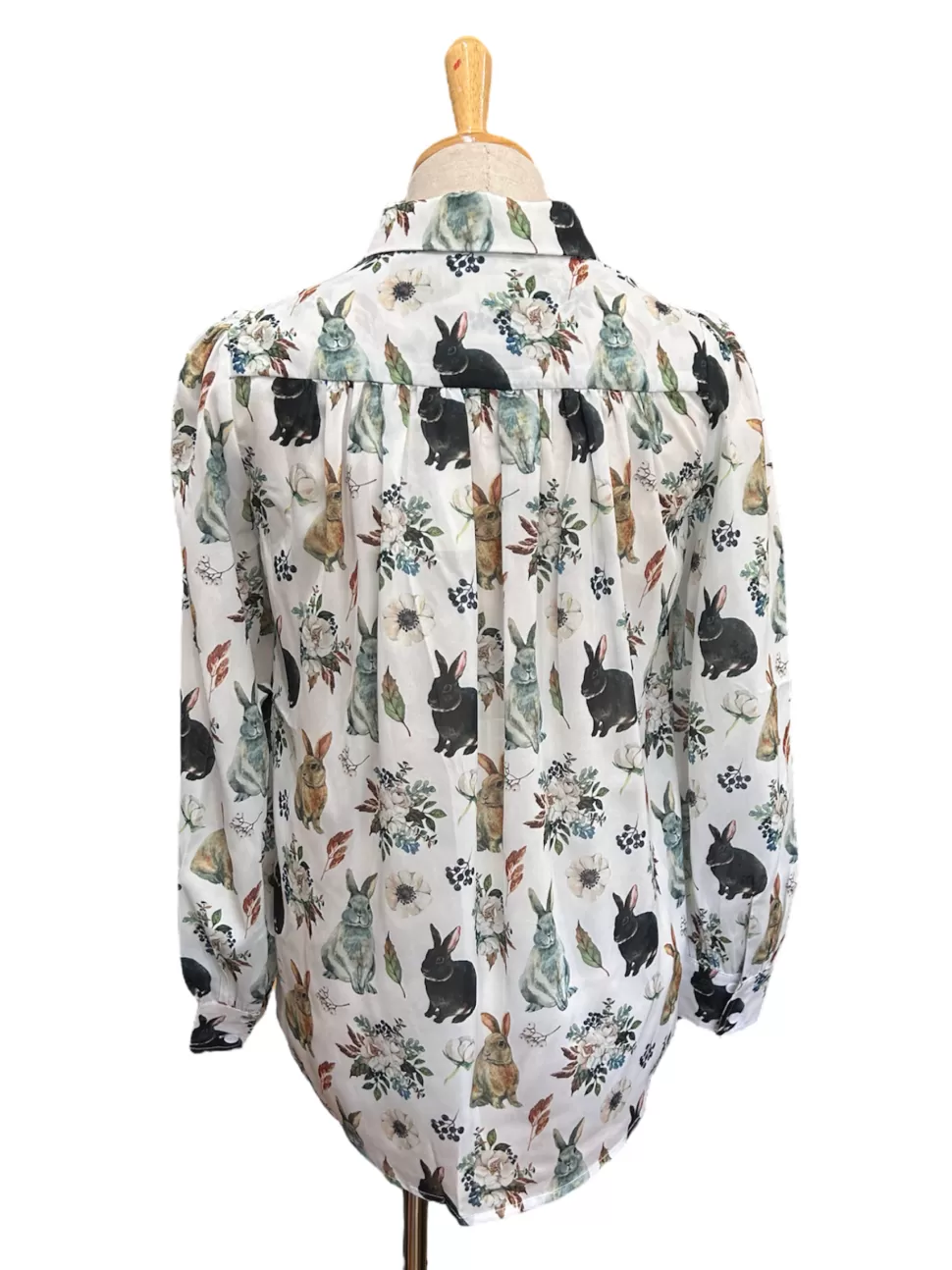 Introducing the Madeline Top in a rabbit print, a whimsical button-up collar shirt. With puff and cuff sleeves, it exudes femininity and charm. The overall print features adorable rabbits and enchanting mushrooms, creating a magical vibe. Made from 100% recycled polyester, this top allows you to express your love for rabbits in an eco-friendly way. Whether you’re heading for a casual outing or aiming to infuse your style with a touch of whimsy, this delightful top is the perfect choice for any rabbit enthusiast.